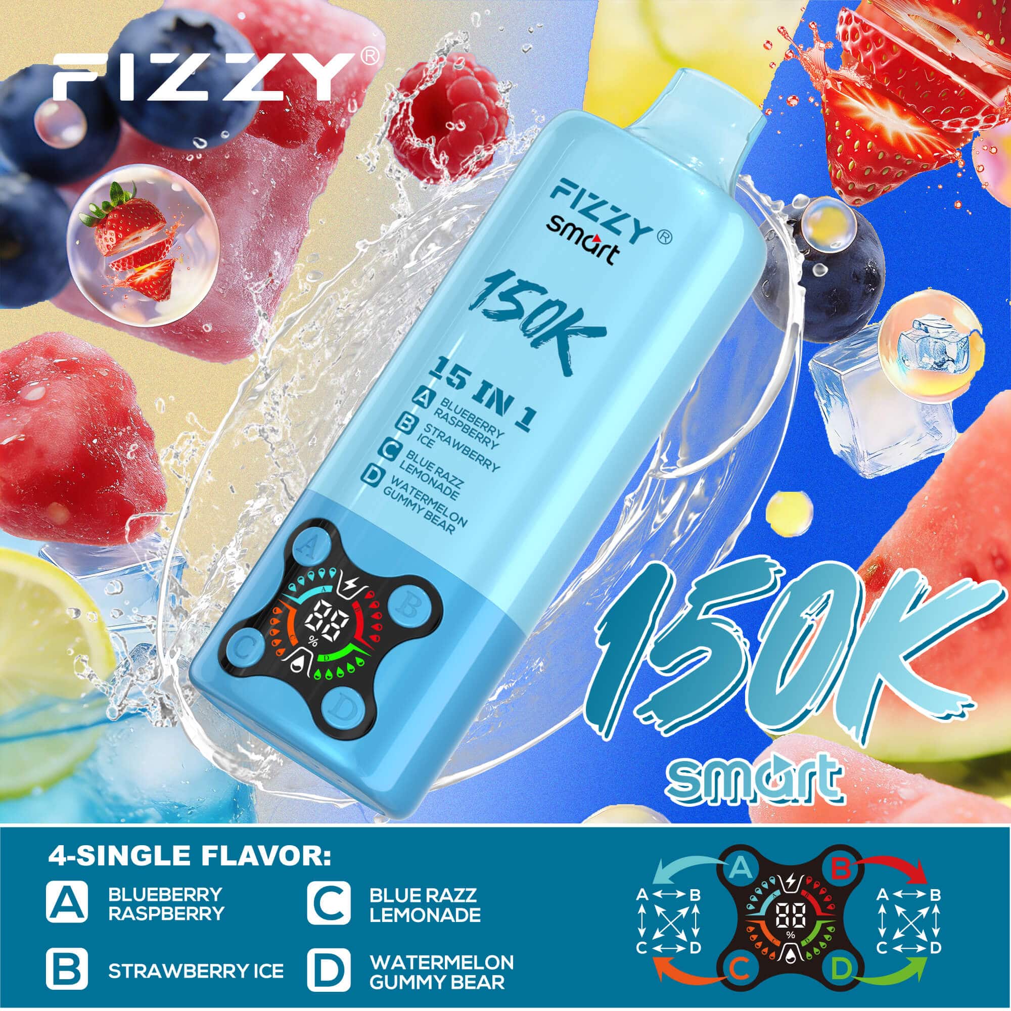 Dankzij het 15-in-1 smaaksysteem kunnen gebruikers genieten van meerdere smaakprofielen in één apparaat. In plaats van verschillende vapes mee te nemen, kun je met de Fizzy 150K Puffs eenvoudig van smaak wisselen met behoud van een consistente dampkwaliteit.
